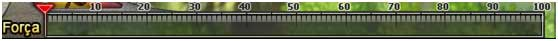 Durante o combate, a barra de poder inferior mostra a força atual enquanto você mantém pressionada a barra de espaço. Se você pressionar demais e a força ultrapassar a que pretendia usar, continue pressionando: ao atingir 100%, a barra retornará e você poderá tentar novamente alcançar a força desejada. Isso não acontecerá mais de uma vez.